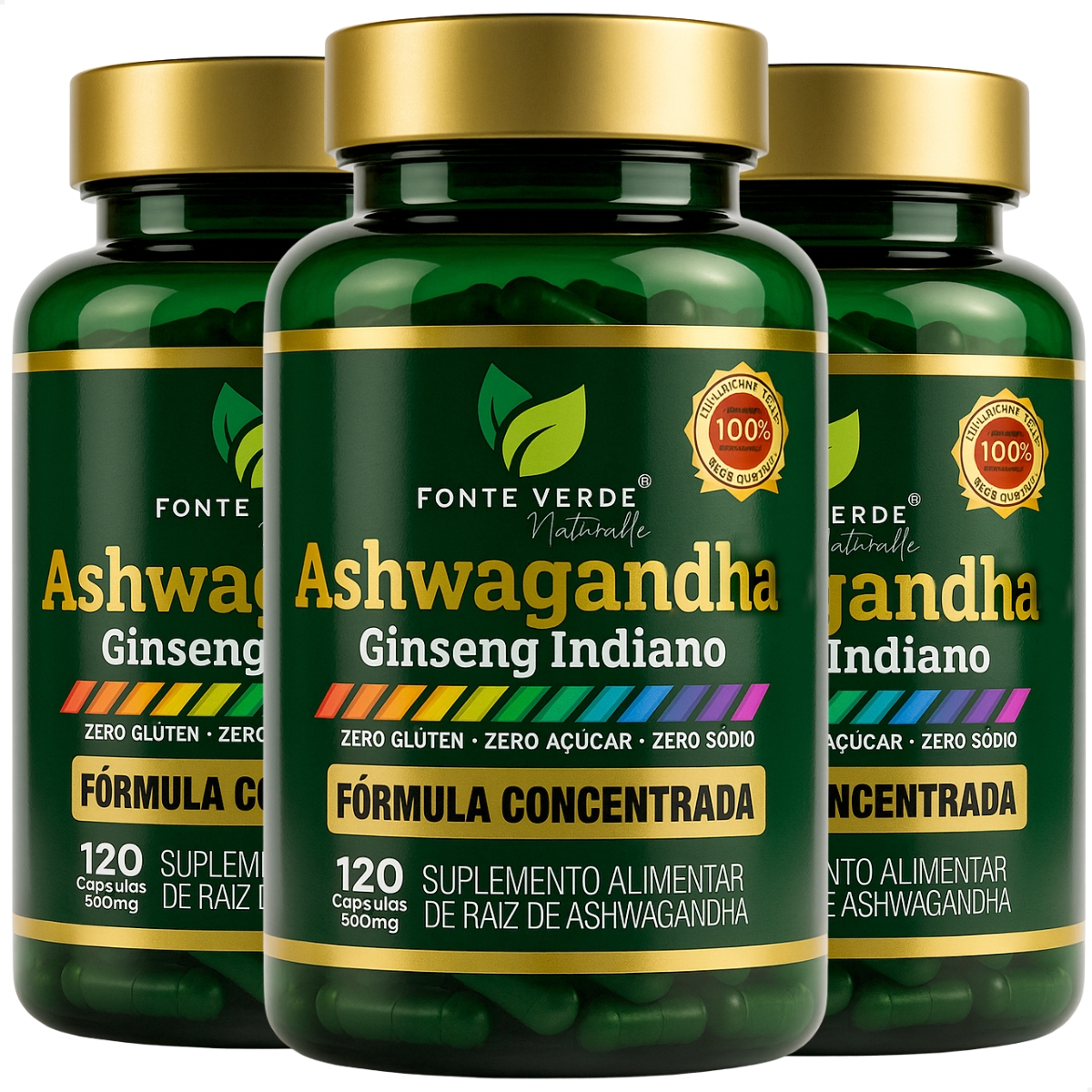 3 Potes Ashwagandha 120 Cáps - Fonte Verde